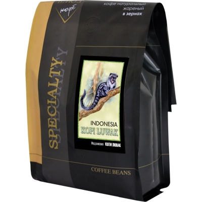 Самый дорогой в мире кофе. Съеденный люваком кофе приобретает редкий карамельный оттенок, аромат шоколада. Правильно приготовленный напиток получается практически без горечи, очень насыщенный, сливочной консистенции с ореховыми нотками во вкусе. Средняя упаковка, в зёрнах.